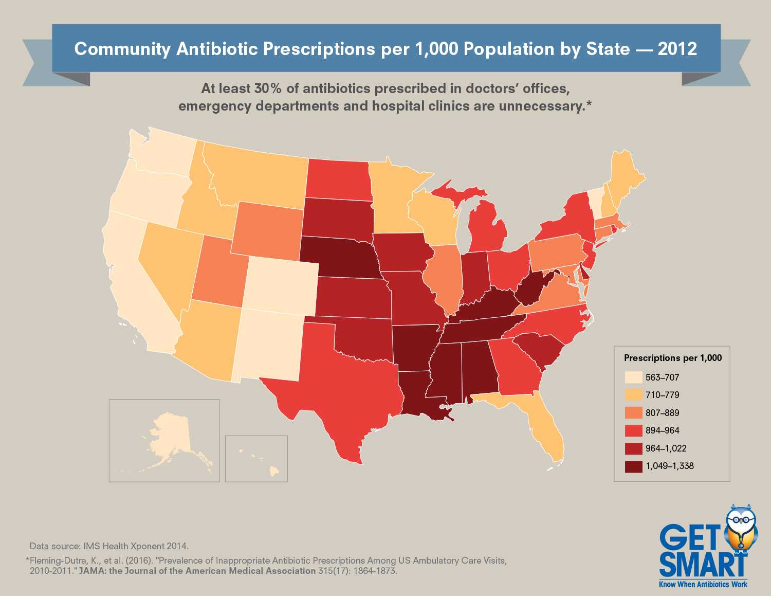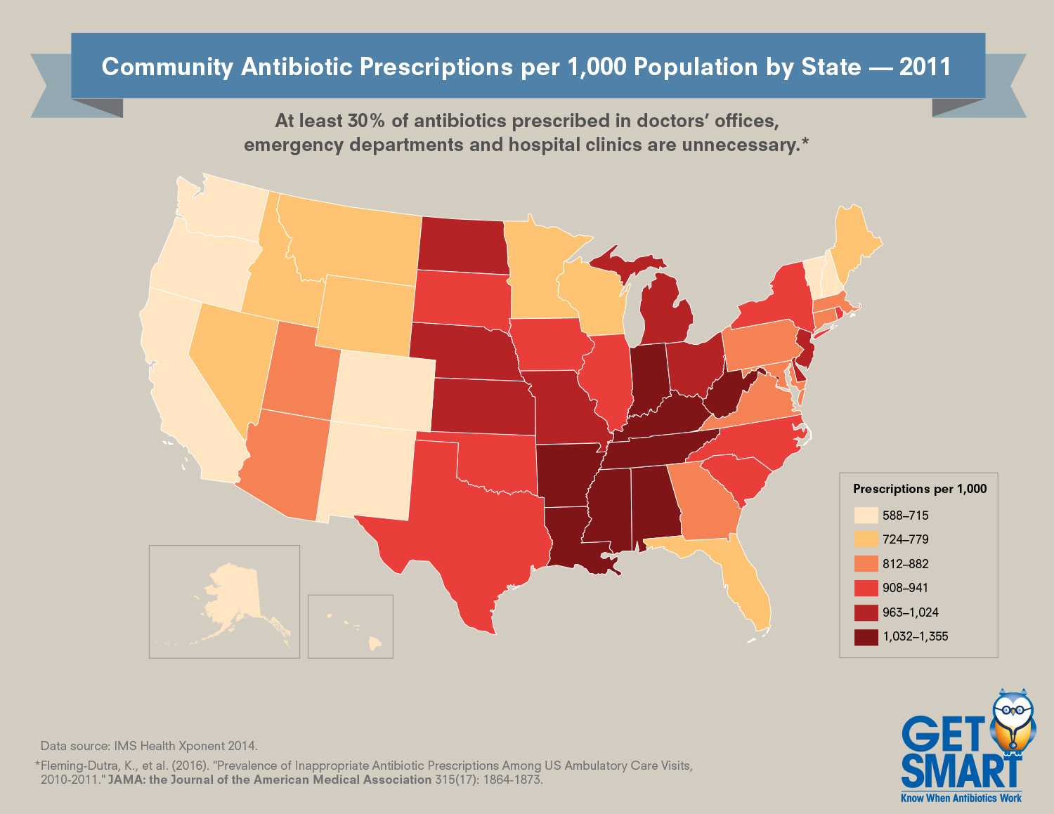 - Antibiotic prescribing in the outpatient setting varies by state.1