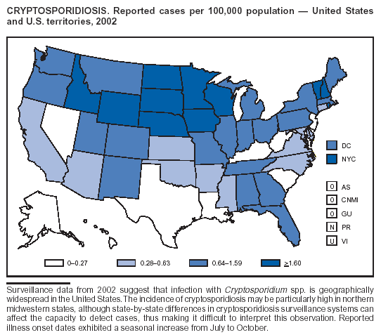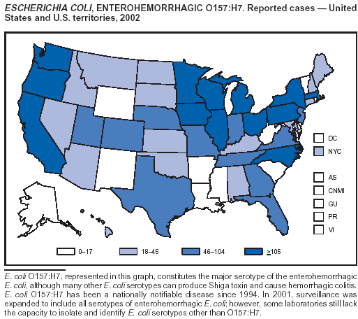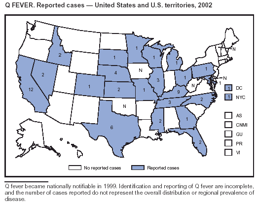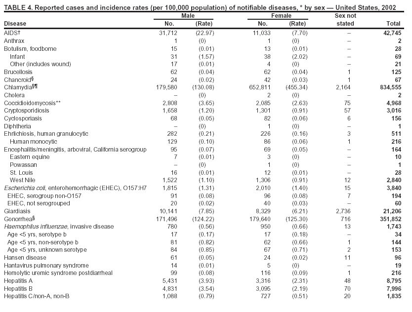 Part 1 contains tables showing incidence data for each of the nationally notifiable diseases during 2002.* The tables provide the number of cases reported to CDC for 2002, as well as the distribution of cases by month, geographic location, and