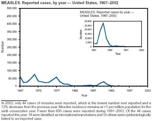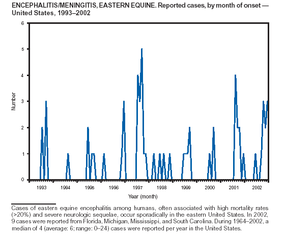 * Because no cases of paralytic poliomyelitis and western equine encephalitis were reported in the United States during 2002, these diseases do not appear in the tables in Part 1.