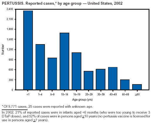 Vitek CR, Pascual FB, Baughman AL, Murphy TV. Increase in deaths from pertussis among young infants in the United States in the 1990s. Pediatr Infect Dis J 2003;22:628--34.