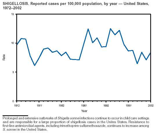 Laboratory-confirmed shigellosis in the United States, 1989--2002: epidemiologic trends and patterns. Clin Infect Dis 2004:In press.