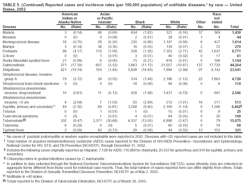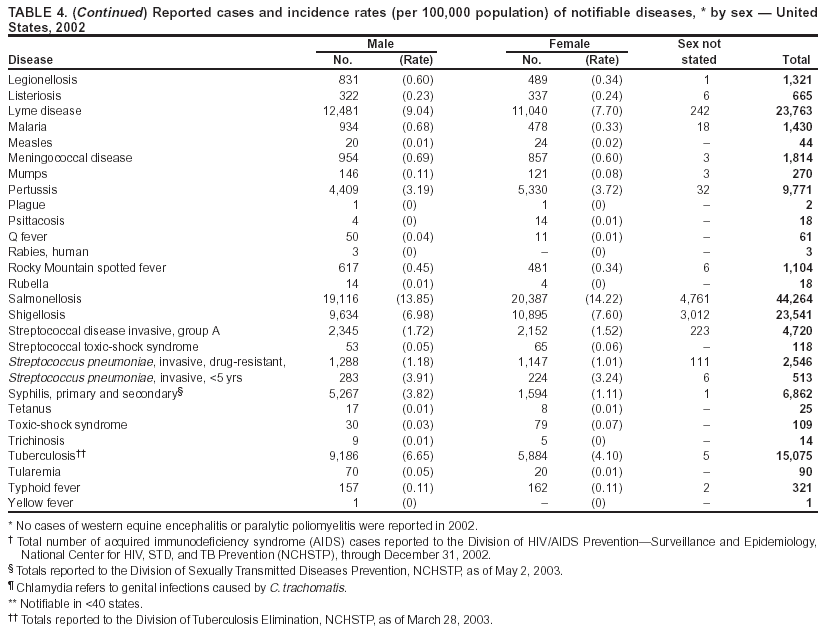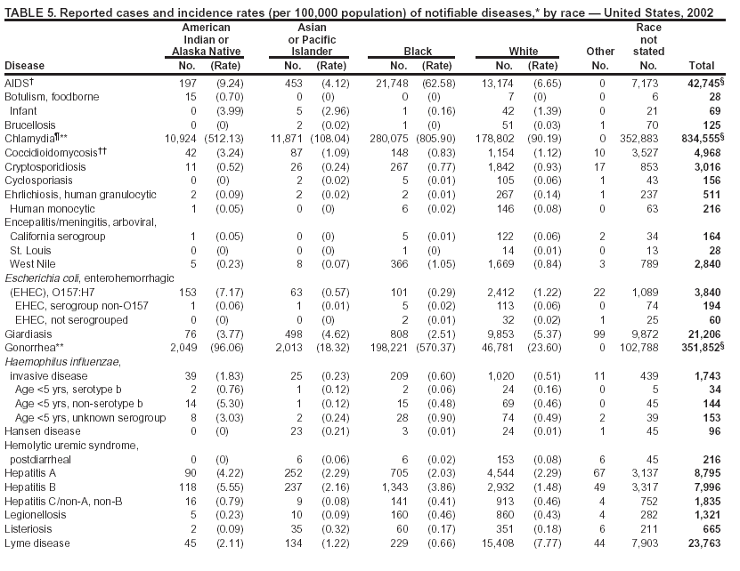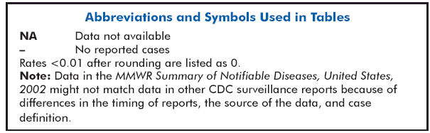 Summary of Notifiable Diseases --- United States, 2002