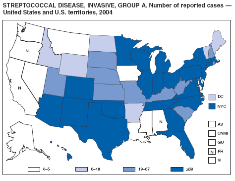 CDC. Active Bacterial Core Surveillance report. Emerging Infections Program Network. Group A streptococcus, 2003---provisional. Atlanta, GA: US Department of Health and Human Services, CDC; 2005. Available at http://www.cdc.gov/ncidod/dbmd/abcs/survreports/gas04prelim.pdf.