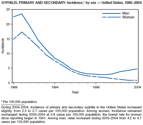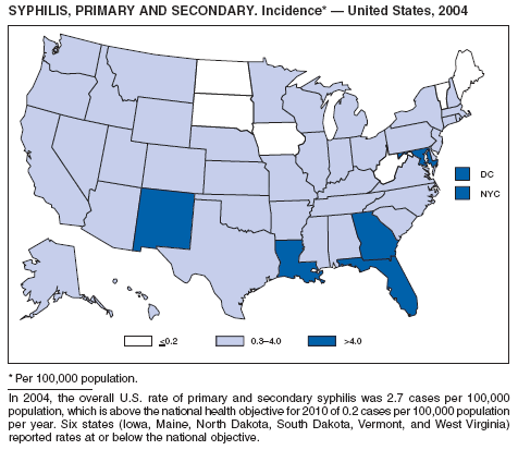 CDC. Primary and secondary syphilis---United States, 2002. MMWR 2003;52:1117--20.