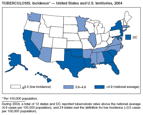CDC. Reported tuberculosis in the United States, 2003. Atlanta, GA: US Department of Health and Human Services, CDC; 2004. Available at http://www.cdc.gov/nchstp/tb.