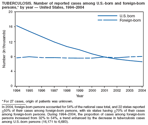 Talbot EA, Moore M, McCray E, Binkin NJ. Tuberculosis among foreign-born persons in the United States, 1993--1998. JAMA 2000;284:2894--900.