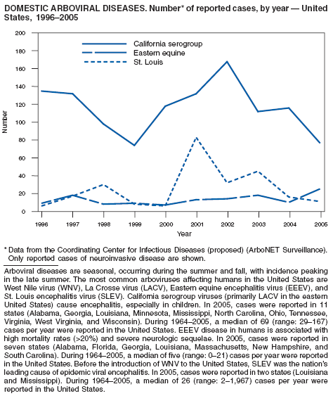 † The national surveillance case definition for the arboviral diseases was revised in 2005, and nonneuroinvasive arboviral diseases were added to the list of nationally notifiable infectious diseases.