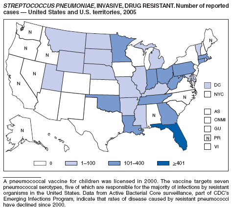 Kyaw MH, Lynfield R, Schaffner W, et al. Effect of introduction of the pneumococcal conjugate vaccine on drug-resistant Streptococcus pneumoniae. N Engl J Med 2006;354:1455--63.