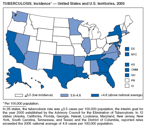 CDC. Reported tuberculosis in the United States, 2003. Atlanta, GA: US Department of Health and Human Services, CDC; 2004. Available at http://www.cdc.gov/nchstp/tb.
