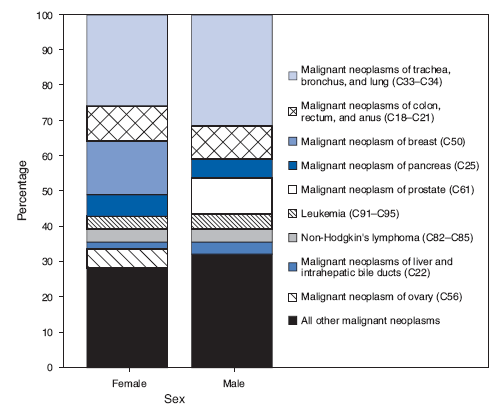 QuickStats: Percentage of Deaths from Malignant Neoplasms, by Sex