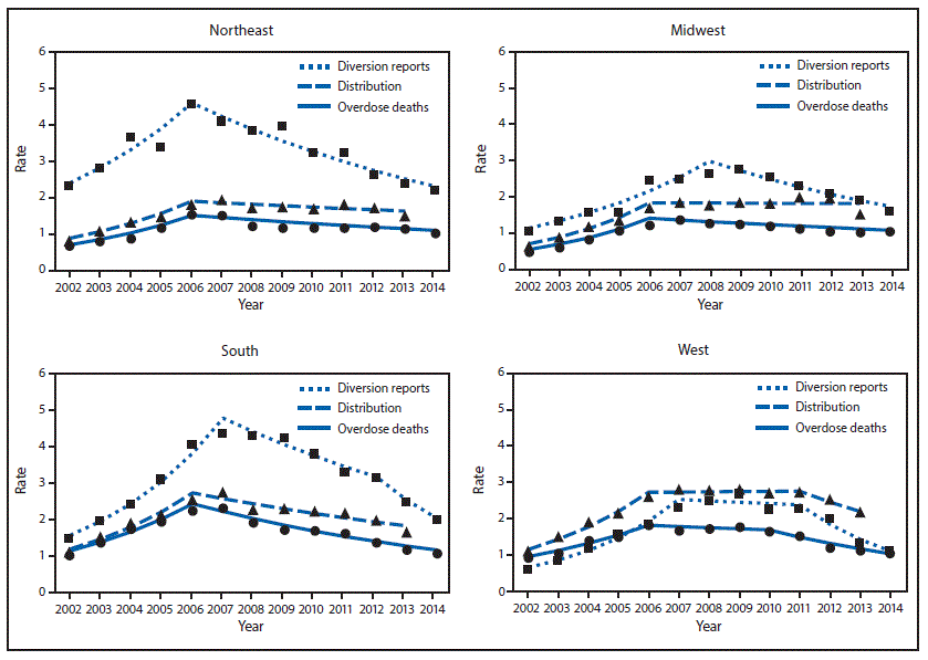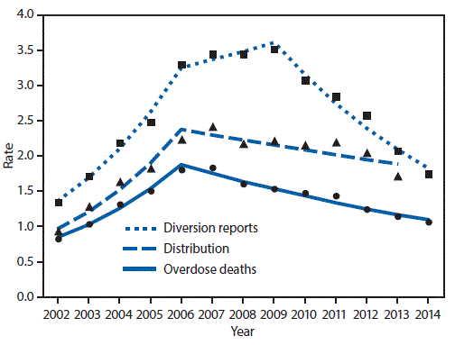Trends in Methadone Distribution for Pain Treatment, Methadone Diversion, and Overdose Deaths — United States, 2002–2014