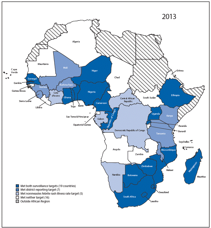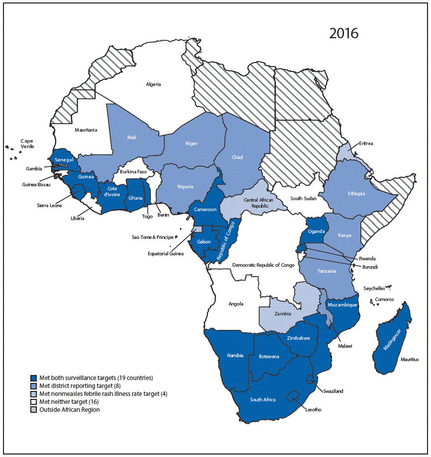 Suggested citation for this article: Masresha BG, Dixon MG, Kriss JL, et al. Progress Toward Measles Elimination — African Region, 2013–2016. MMWR Morb Mortal Wkly Rep 2017;66:436–443. DOI: http://dx.doi.org/10.15585/mmwr.mm6617a2.