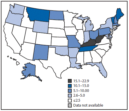 § Data were available for all states except Connecticut, New Jersey, and Rhode Island. Data also were not available for the District of Columbia.