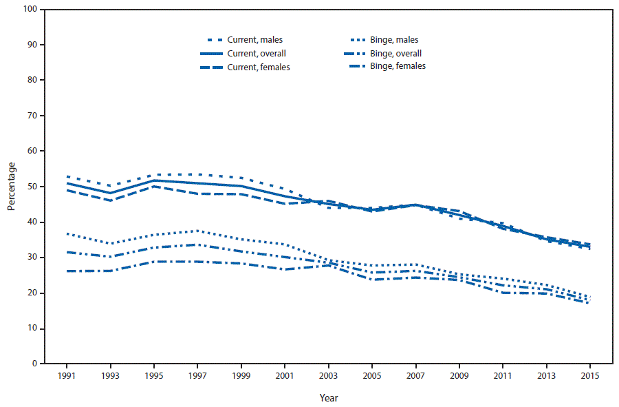 Current and Binge Drinking Among High School Students — United States, 1991–2015