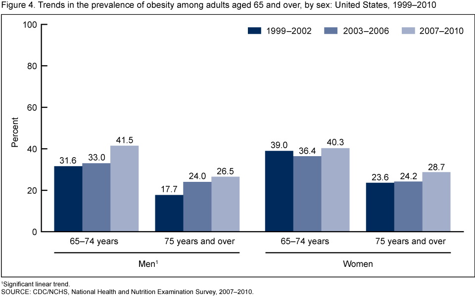 - More than one-third of older adults aged 65 and over were obese in 2007–2010.