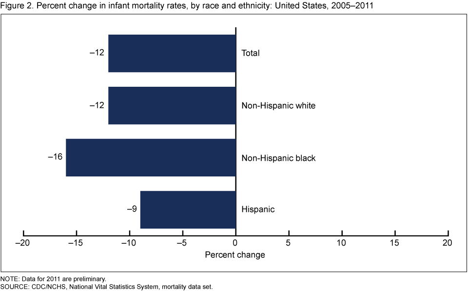 Figure 2. Percent change in infant mortality rates, by race and ethnicity: United States, 2005–2011