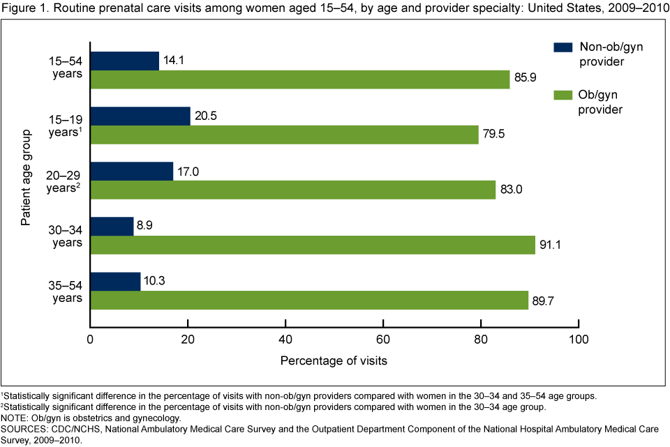 - At 14.1% of routine prenatal care visits in the United States in 2009–2010, women saw providers whose specialty was not obstetrics and gynecology (ob/gyn).
