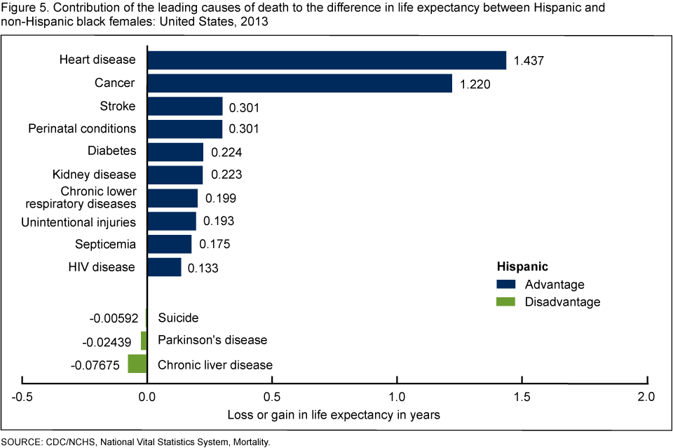 Figure 5. Contribution of the leading causes of death to the difference in life expectancy between Hispanic and non-Hispanic black females: United States, 2013