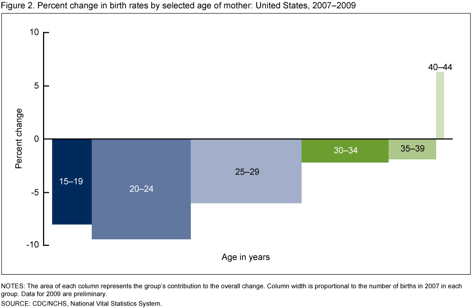 - From 2007 through 2009, birth rates fell for all women under age 40 (Figure 2 and Table).