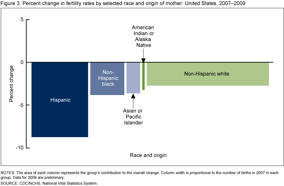 - From 2007 through 2009, fertility rates dropped for all racial and ethnic groups (Figure 3 and Table).