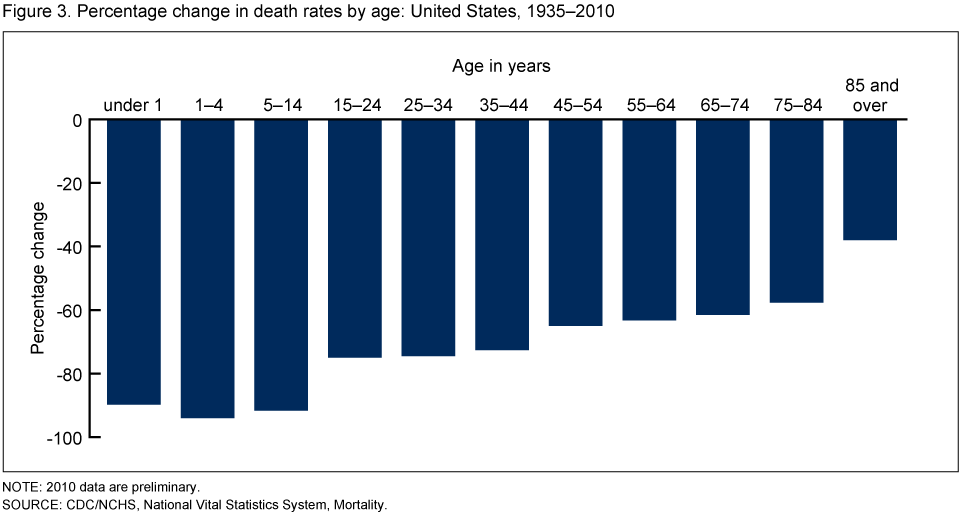 Figure 3. Percentage change in death rates by age: United States, 1935–2010