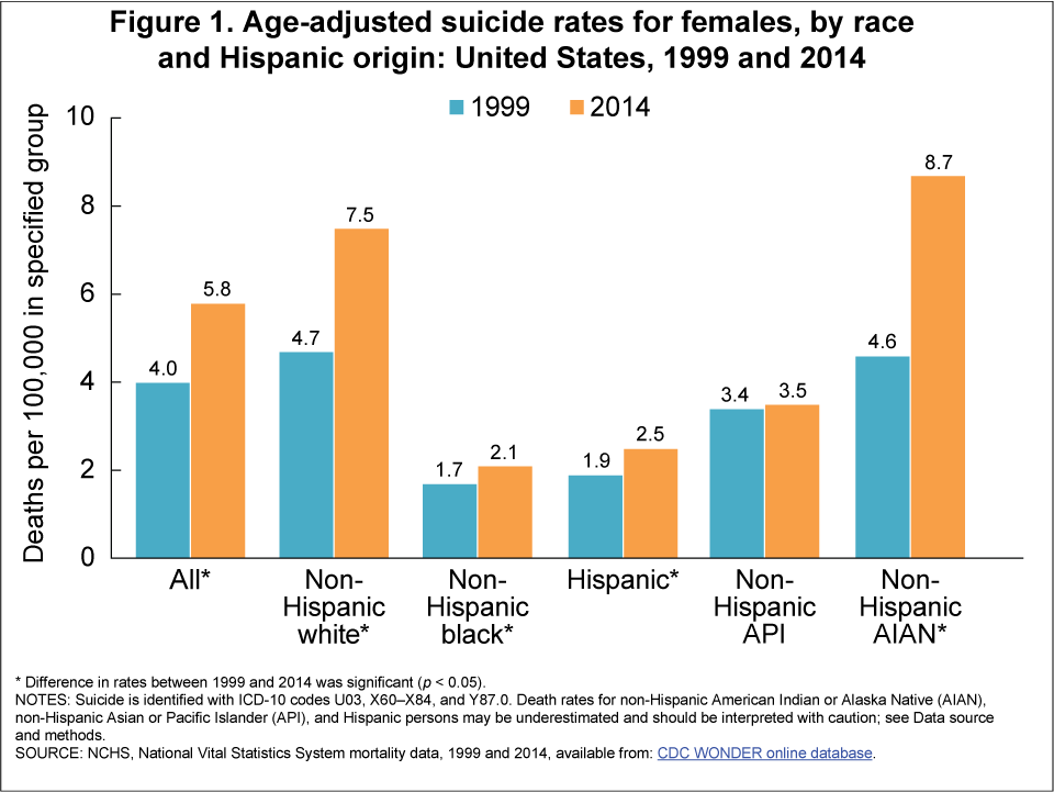 Suicide Rates for Females and Males by Race and Ethnicity: United States, 1999 and 2014