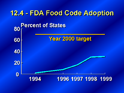In the retail, restaurant, and institutional side of this equation, FDA established food protection codes which have now been adopted in 16 states just since 1994 when they were first announced. In addition, a very encouraging sign is that another 25 states say that adoption of the code is in process.