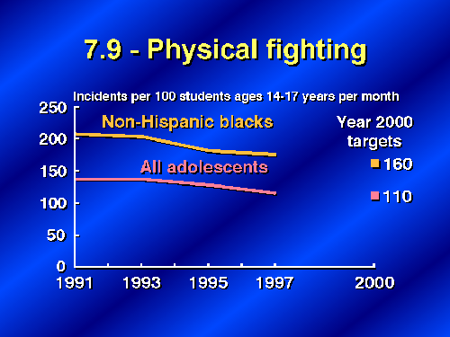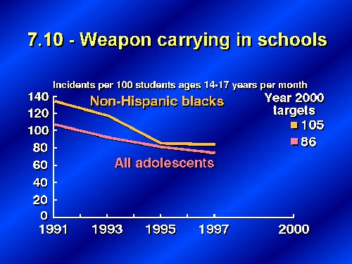 And the data also show that the incidence of weapon carrying in school is way down. Decreases for all adolescents and for Black students, a special sub-objective, have exceeded their targets.
