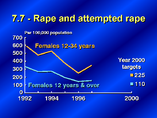 Looking at trends in homicide - encouraging news. Overall rates have shown a downturn since mid-decade and we have surpassed the year 2000 target. So although homicides dominate the news, we are making progress.