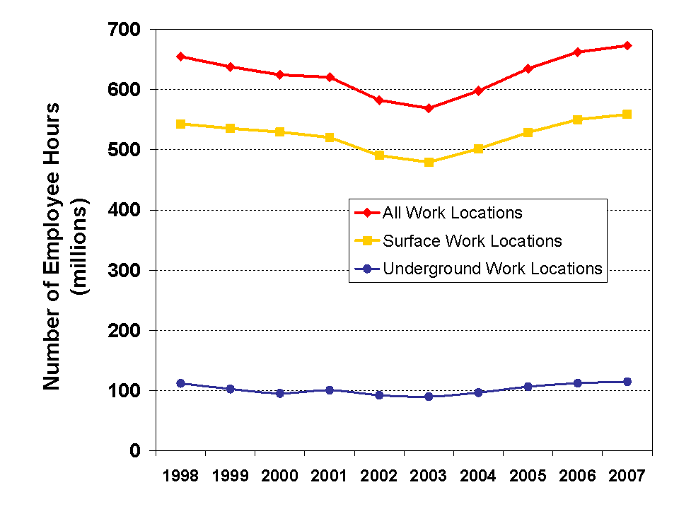 Data source: Publicly released data files of employment and accident/injury/illness collected by MSHA under 30 CFR 50.