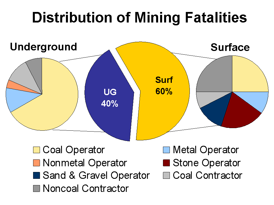 Data obtained from the Mine Safety and Health Administration (MSHA) indicated a total of 889 underground (6.0%) and 13,982 surface (94.0%) mining operations. [1]