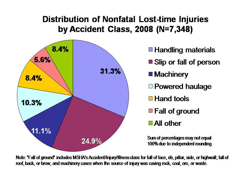 Distribution of nonfatal lost-time injuries by accident class for 2008