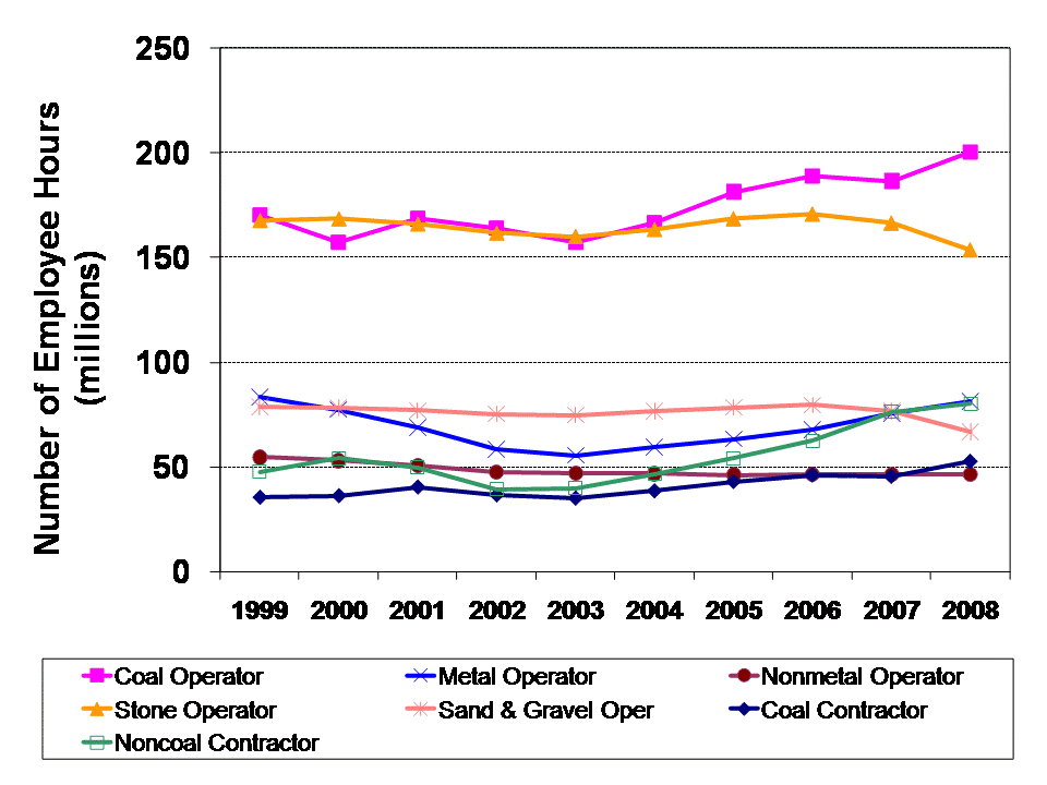 - Mining sectors includes coal operators, metal operators, nonmetal operators, stone operators, sand and gravel operators, coal contractors, and noncoal contractors.