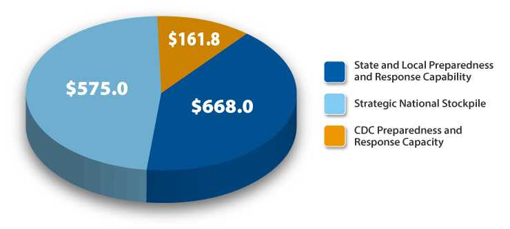 The Office of Public Health Preparedness and response receives approximately $1.4 billion in annual funding from Congress to build and strengthen national preparedness for public health emergencies including natural, biological, chemical, radiological, and nuclear incidents. This funding supports a range of activities at CDC and state and local public health departments. Over three-quarters of this funding is appropriated for the Public Health Emergency Preparedness cooperative agreement and the Strategic National Stockpile.