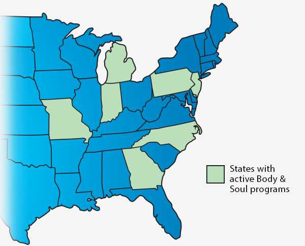 Since these first studies of effectiveness, the American Cancer Society has embraced Body & Soul as one of its national cancer control programs. The program is established in Michigan and Indiana, reaching hundreds of churches.