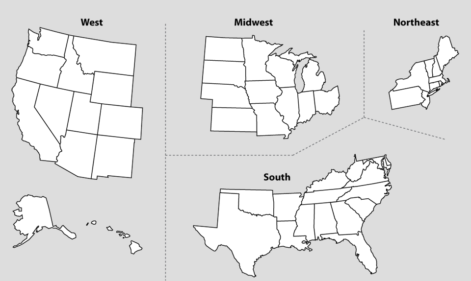 | West | Midwest | South | Northeast |