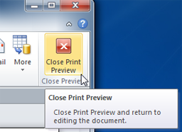 To exit the Print Preview, simply click the Close Print Preview command. You will be returned to the last view you used.