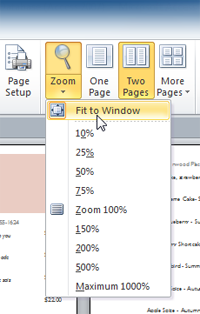With the Zoom options, you can decide how much of the report you would like to see on screen. You can also opt to view multiple pages at once.