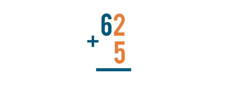 We'll start by adding the digits on the right, 2 and 5.
