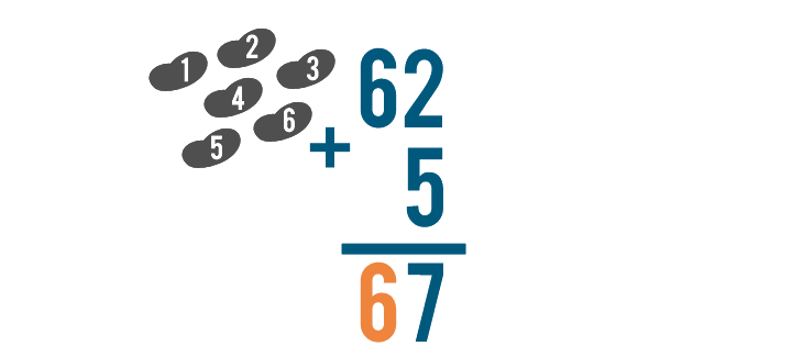 Let's look at one more problem, just for practice. This time, we'll solve 62 + 5.