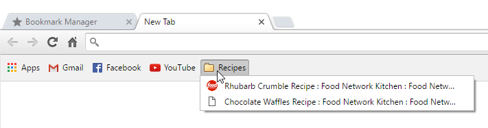 - Click the folder where you want to add a new folder. In this example, we'll create a folder to help organize some recipes in the Other bookmarks folder.