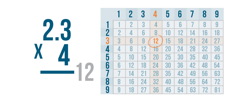 Now it's time to solve 4 x 3. We can use the times table.