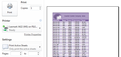 From the Print pane, you can change the print settings and print your workbook. You can also see a preview of your workbook.