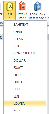 The Text category contains functions that work with the text in arguments using tasks like converting text to lowercase (LOWER) or replacing text (REPLACE).