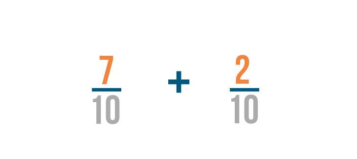 7 plus 2 equals 9, so we'll write that to the right of the numerators.