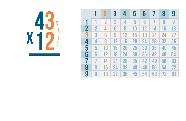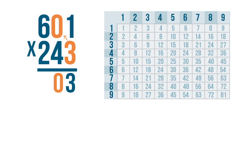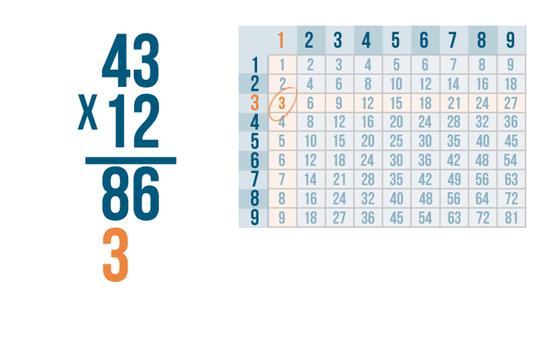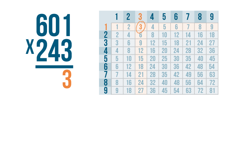 As always, start by multiplying the bottom-right digit by the top-right digit. So 3 x 1.