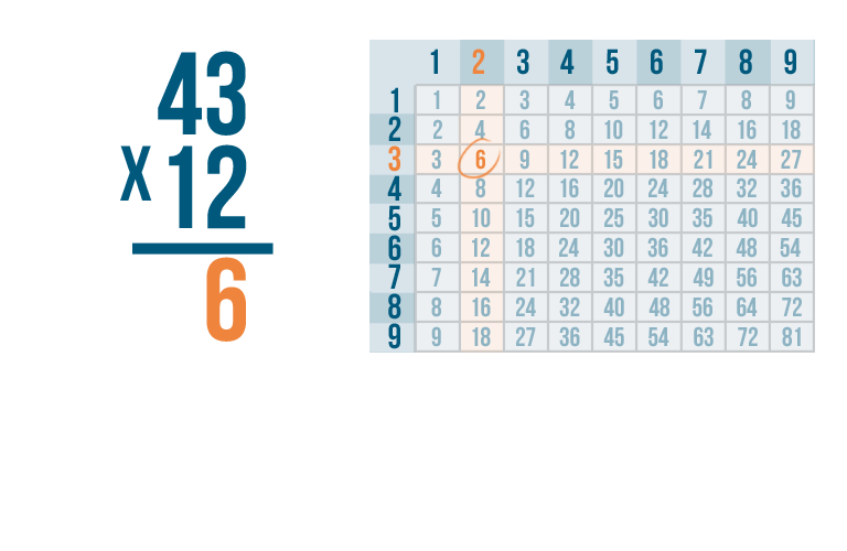 Thanks to our times table, we know that 3 x 2 is 6.