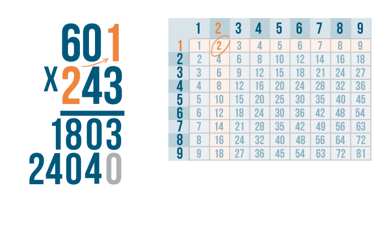 Now it's time to solve 2 x 4. We can use the times table.