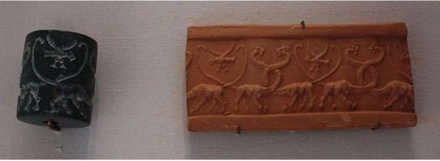 The seal was rolled over the soft clay of a tablet and functioned as a signature. The minute images on these seals use a system of symbolic representation that identifies the political status of the owner.