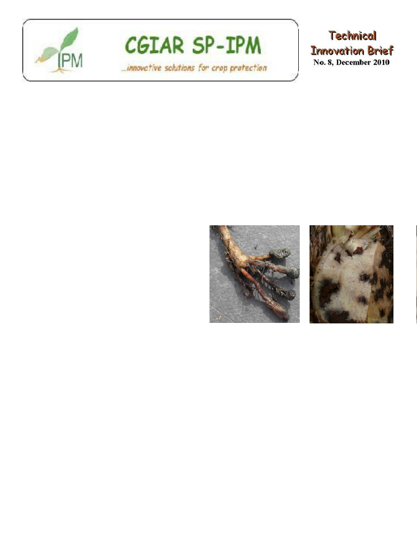 Nematode and weevil damage to banana roots and suckers. – D. Coyne